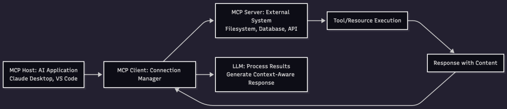 - Execution: AI application invokes tools or requests resources as needed